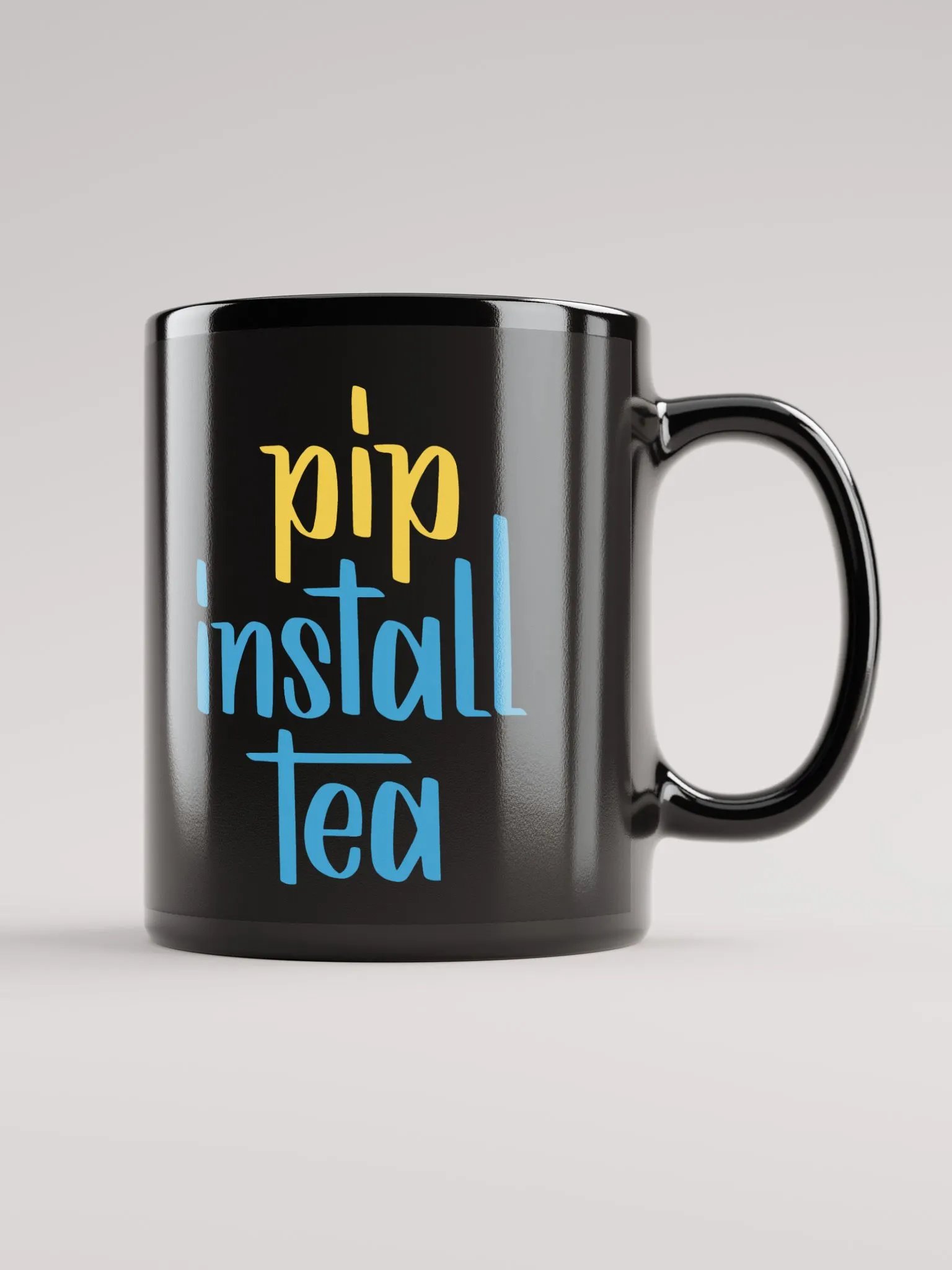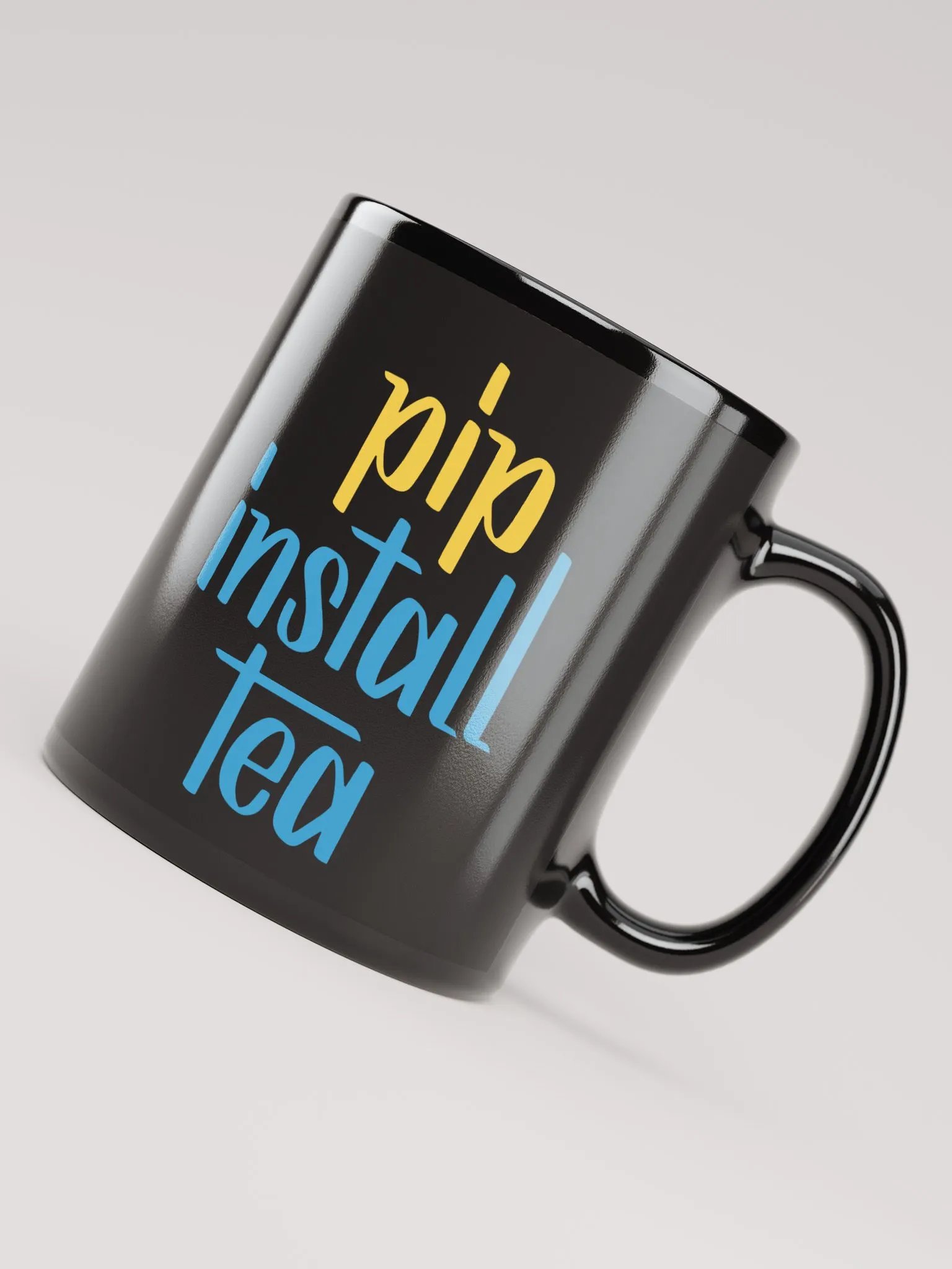 This is a black mug for Python developers with a "pip install tea" hand-lettered design on it. Get that sweet, sweet caffeine from PyPI and keep cranking out that beautiful, PEP 8 compliant code.