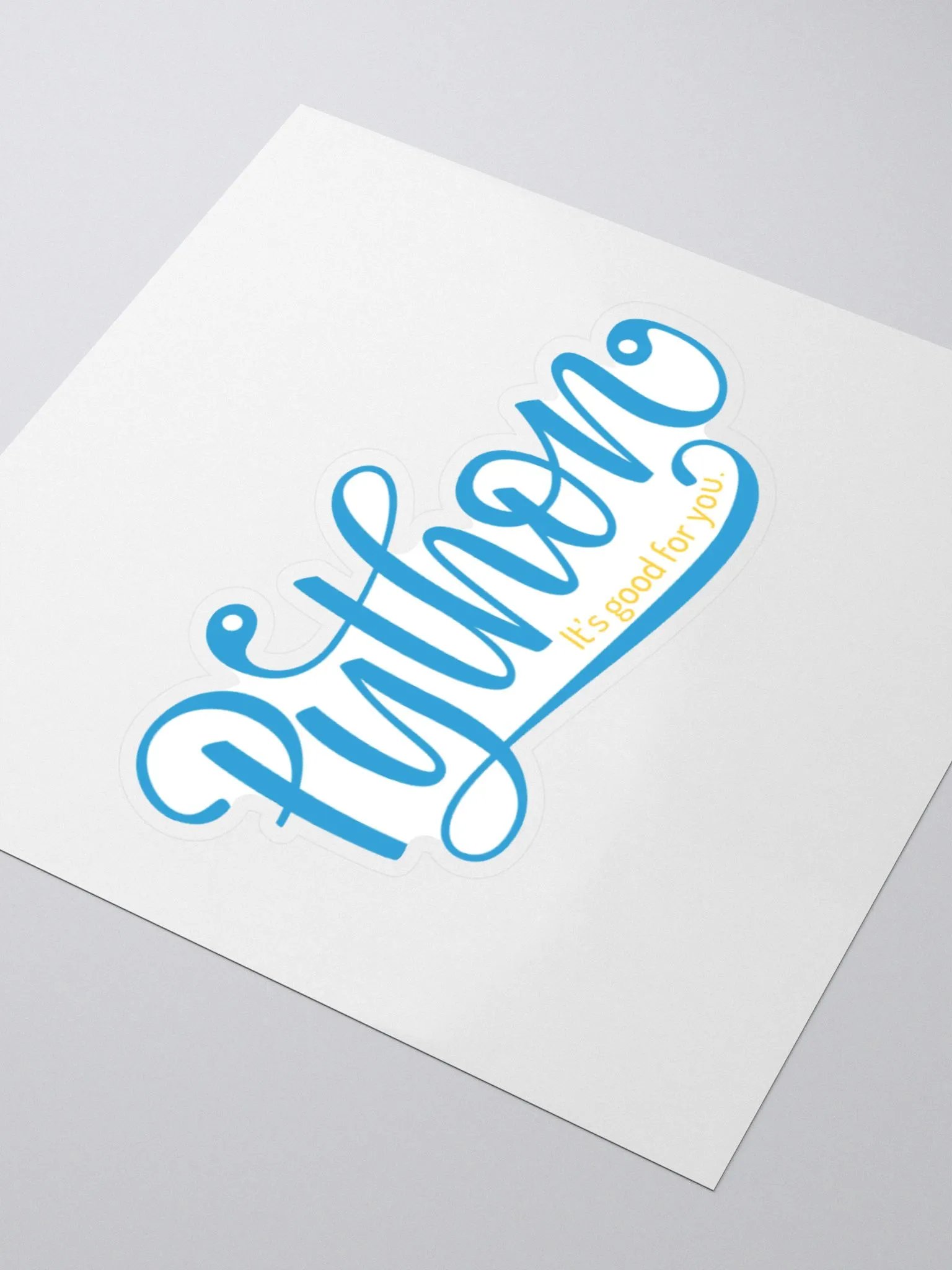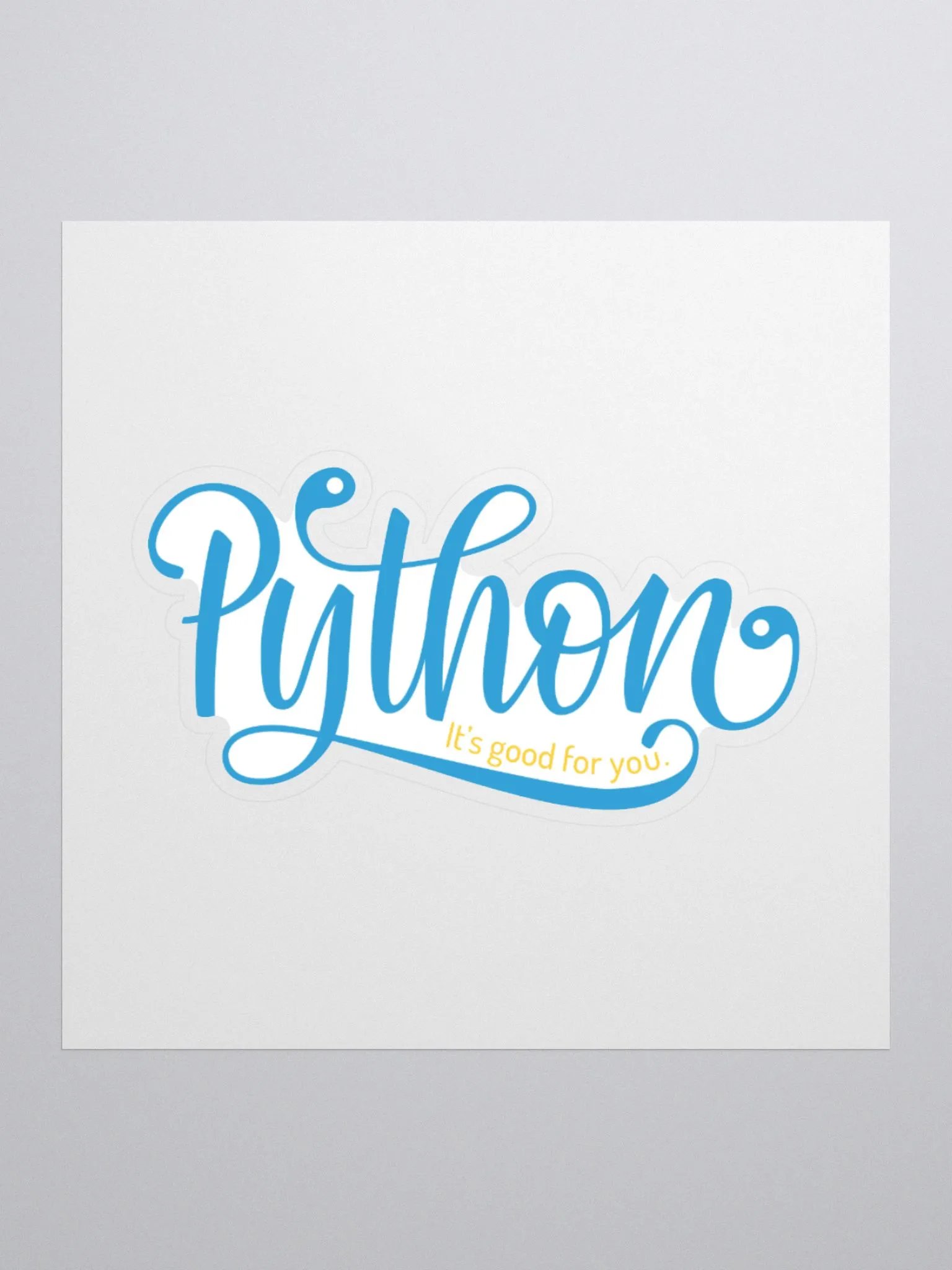 This sticker says "Python: It's Good For You" in a unique hand-lettered design. This Pythonic sticker is ideal for putting on your laptop, tablet, desk, or any other flat & smooth surface.